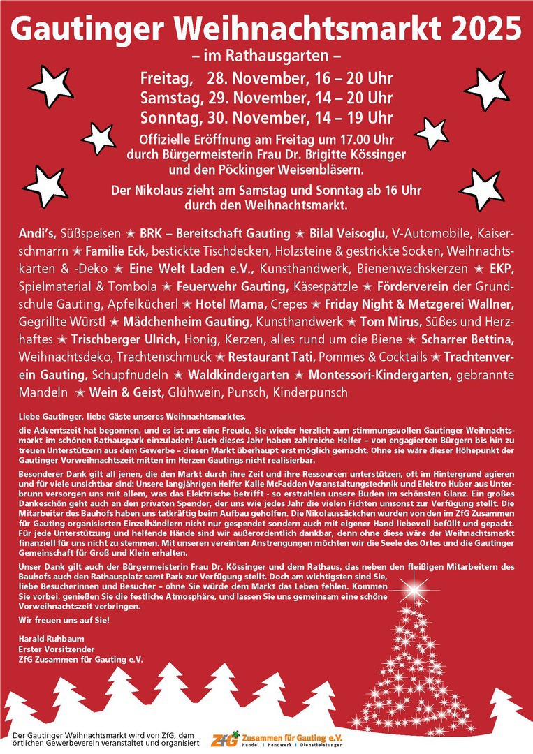 Verbunden mit der großen Bitte, diese Aktion zu nutzen und vor Ort in Gauting einzukaufen, wünsche ich eine schöne und ruhige