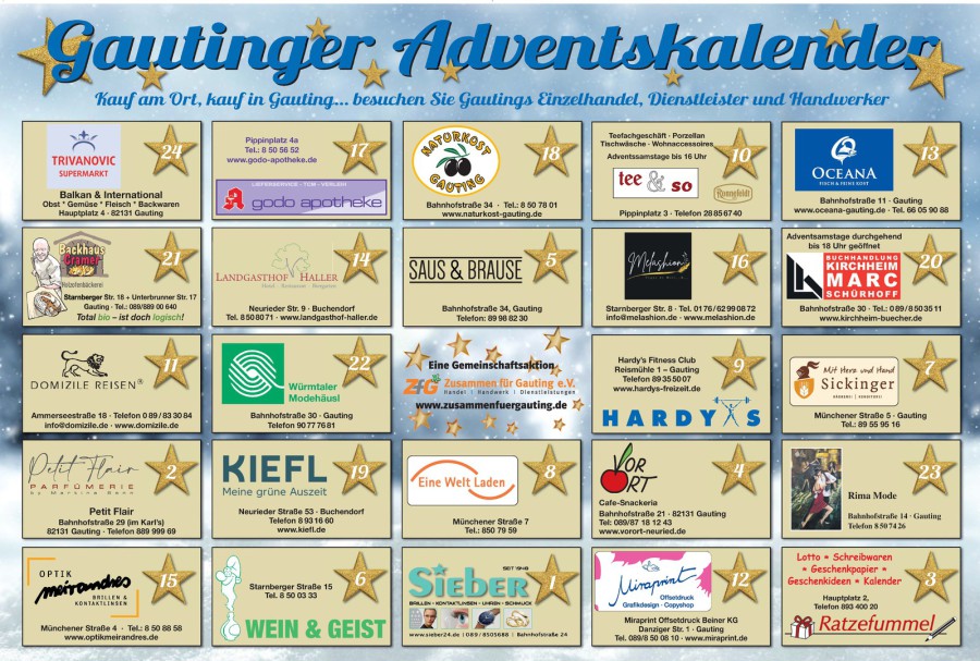 zwischen 24.12. und 12.01. beim Gewerbeverein Zusammen für Gauting e.V. abgibt oder dort hinschickt, nimmt an der großen Sonderauslosung teil und kann attraktive Preise